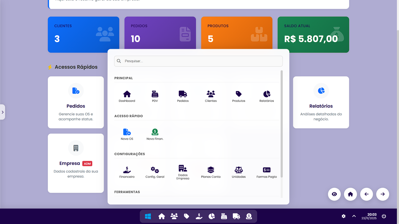 Experimente a revolução na gestão comercial. Uma interface deslumbrante, totalmente personalizável e com aplicativos flutuantes que aumentam sua produtividade.