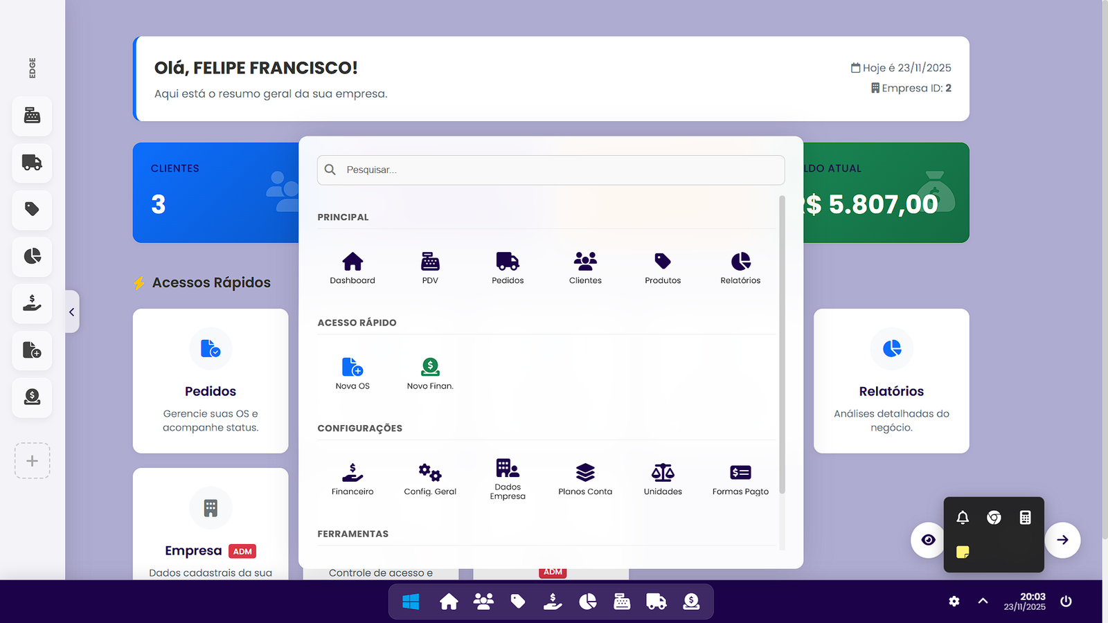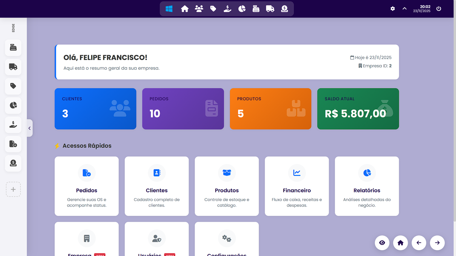 Experimente a revolução na gestão comercial. Uma interface deslumbrante, totalmente personalizável e com aplicativos flutuantes que aumentam sua produtividade.
